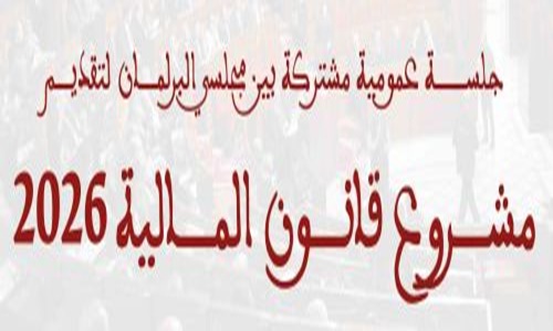 طبقا لأحكام الفصل 68 من الدستور، يخبر رئيس مجلس النواب ورئيس مجلس المستشارين كافة السيدات والسادة البرلمانيين المحترمين أن البرلمان بمجلسيه سيعقد جلسة عمومية مشتركة يوم الاثنين 20 أكتوبر 2025 مباشرة بعد الجلسة الأسبوعية المخصصة للأسئلة الشفهية لمجلس النواب، تخصص لتقديم مشروع قانون المالية للسنة المالية 2026، من طرف السيدة وزيرة الاقتصاد والمالية.